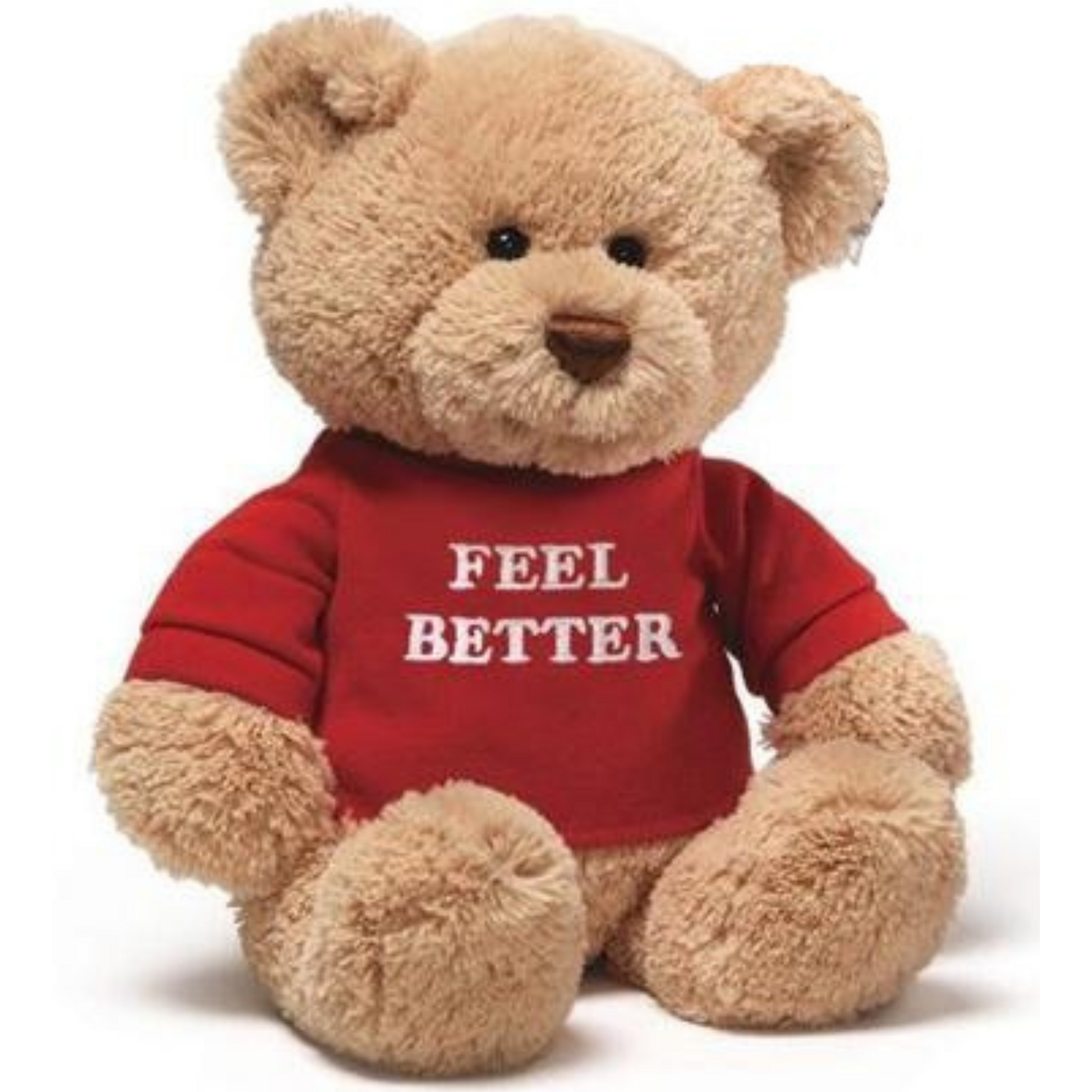 - An ultra soft 12.5" Gund Teddy Bear with "Feel Better" t-shirt. This adorable, huggable teddy bear features a removable t-shirt that says "Feel Better".